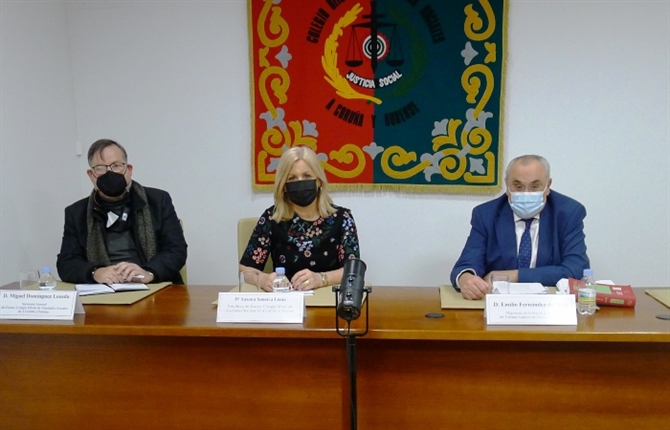 A xornada foi presentada por Susana Soneira Lema, presidenta desta Corporación e moderada por Miguel Angel Domínguez Losada, secretario xeral, que deron paso a Emilio Fernández de Mata, maxistrado da Sala do social de TSJG, que desenvolveu a temática #ante os asistentes tanto presenciais como os que seguían o curso telemáticamente.